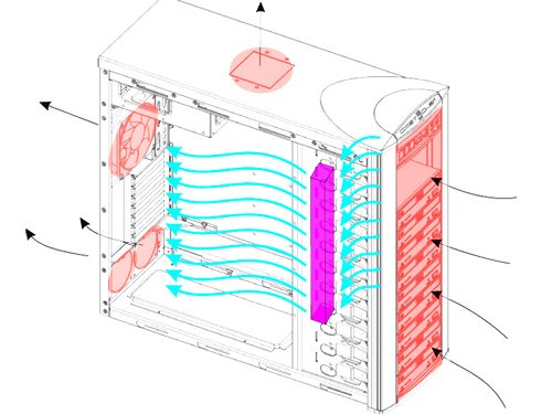 Filter i fronten sörjer för god luftcirkulation - support för upp till 3st 12cm fläktar